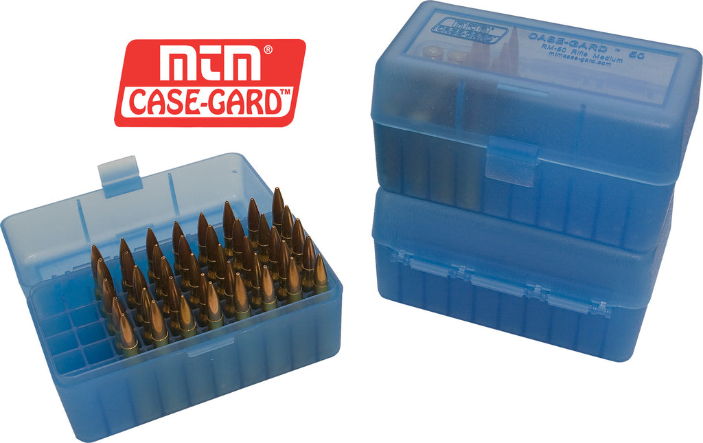 MTM CASE-GARD 50 round rifle ammunition cases are still the first choice of rifle enthusiasts throughout the world since 1968. Made of virtually indestructible polypropylene, that will not warp, crack, chip, peel, expand. Great for ammo storage.