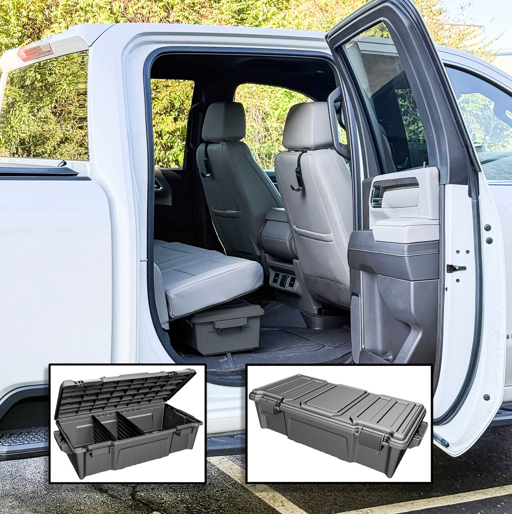Smart storage, hidden in plain sight. Designed to fit cleanly beneath crew cab back seats, this crate disappears under the seat while keeping gear secure, organized, and ready to go. Hidden when parked, yet grab-and-go ready when needed—for true peace of mind.